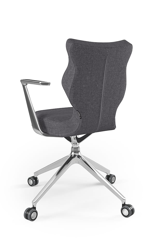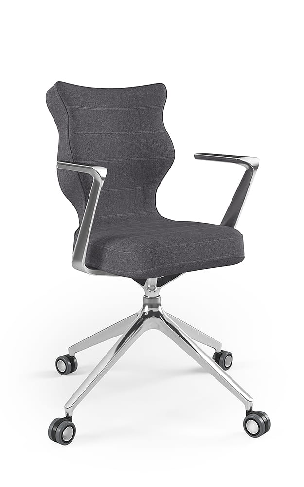 Oprócz tego, prezentowane krzesło biurowe tapicerowane zostało wyposażone w zestaw pięciu miękkich kółek obrotowych. Model krzesła biurowego na kółkach umożliwia płynny ruch w każdym kierunku. Arco dzięki swojej budowie pozwala na swobodne ruchy zarówno na twardej podłodze, jak i na miękkich wykładzinach czy dywanach. Krzesło do biurka Arco, dzięki swojej solidnej konstrukcji, wygodnemu siedzisku, wielu opcjom regulacji, a także licznym walorom estetycznym stanowi idealny wybór. To doskonałe rozwiązanie zarówno do nowoczesnych przestrzeni biurowych, jak i do kameralnego biura w zaciszu domowym. Warto również dodać, że przedstawiane krzesło biurowe zostało zaprojektowane oraz w całości wyprodukowane w Polsce, co dodatkowo świadczy o wysokiej jakości wykonania.