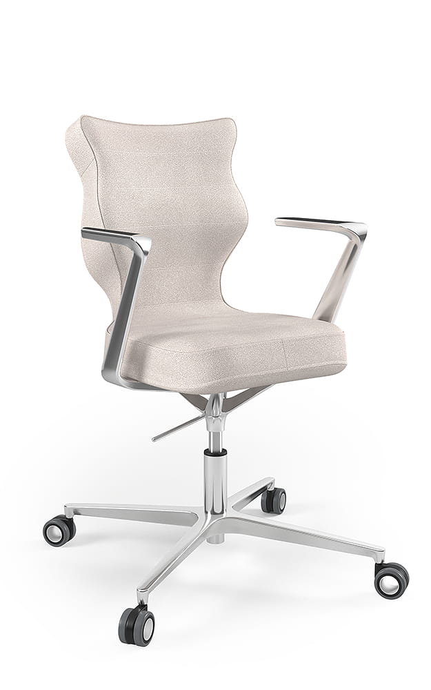 Oprócz tego, prezentowane krzesło biurowe tapicerowane zostało wyposażone w zestaw pięciu miękkich kółek obrotowych. Model krzesła biurowego na kółkach umożliwia płynny ruch w każdym kierunku. Arco dzięki swojej budowie pozwala na swobodne ruchy zarówno na twardej podłodze, jak i na miękkich wykładzinach czy dywanach. Krzesło do biurka Arco, dzięki swojej solidnej konstrukcji, wygodnemu siedzisku, wielu opcjom regulacji, a także licznym walorom estetycznym stanowi idealny wybór. To doskonałe rozwiązanie zarówno do nowoczesnych przestrzeni biurowych, jak i do kameralnego biura w zaciszu domowym. Warto również dodać, że przedstawiane krzesło biurowe zostało zaprojektowane oraz w całości wyprodukowane w Polsce, co dodatkowo świadczy o wysokiej jakości wykonania.