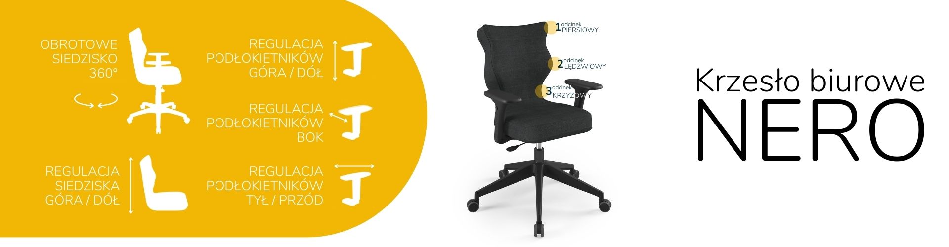 Krzesło biurowe dopasowane do wzrostu 159-188 cm, model Nero kolor antracyt obrotowe