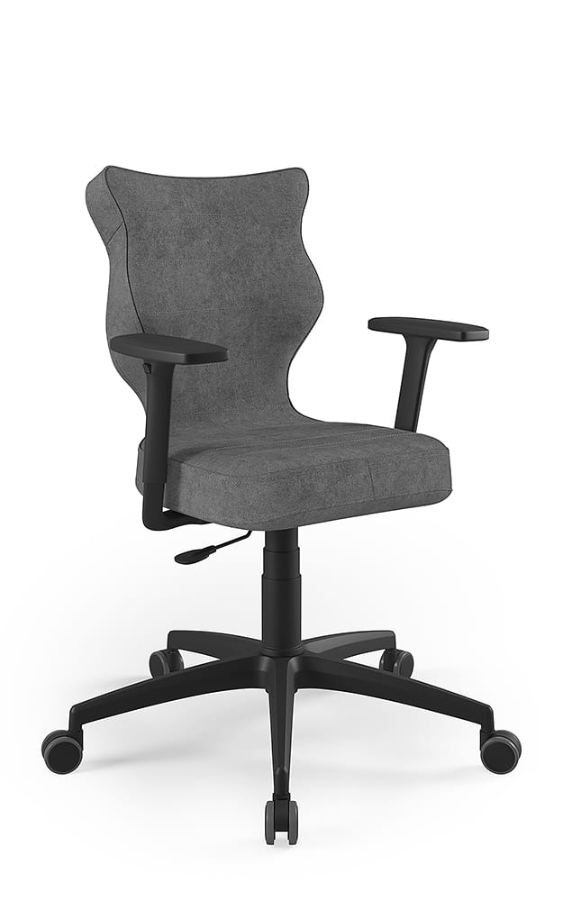 Krzesło biurowe dopasowane do wzrostu 159-188 cm, model Perto Plus kolor ciemny szary obrotowe