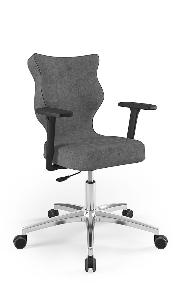 Krzesło biurowe dopasowane do wzrostu 159-188 cm, model Perto kolor ciemny szary obrotowe