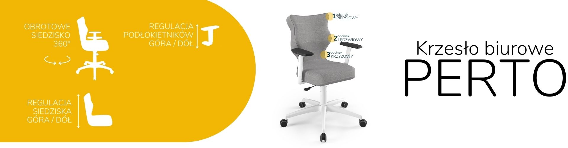 Krzesło biurowe dopasowane do wzrostu 159-188 cm, model Perto kolor szary obrotowe