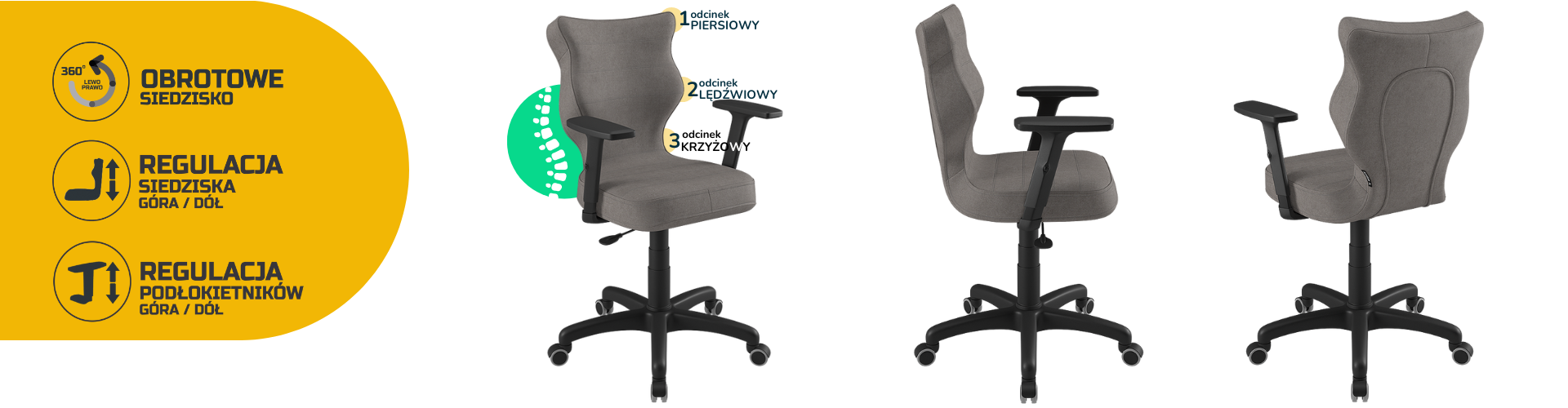 Krzesło Uni to ergonomiczne krzesło biurowe, które zostało stworzone z myślą o osobach pracujących w pozycji siedzącej. Krzesło biurowe tapicerowane Uni zostało wyposażone w miękkie i wygodne siedzisko, aby zapewnić odpowiedni komfort osobie siedzącej przy biurku przez wiele godzin. Co więcej, aby odciążyć kręgosłup, krzesło do biura Uni posiada specjalnie wyprofilowane oparcie. Konstrukcja oraz kształt oparcia zostały wyprofilowane w taki sposób, aby uniknąć przeciążeń kręgosłupa, a także przeciwdziałać powstawaniu wad postawy ciała. Krzesło biurowe profilowane daje nie tylko stabilne podparcie plecom osoby siedzącej, ale również wpływa na poprawne ich ułożenie. Siedzisko z miękkiego tworzywa nie uciska nóg i jest komfortowe nawet przy kilku godzinach pracy w jednej pozycji.