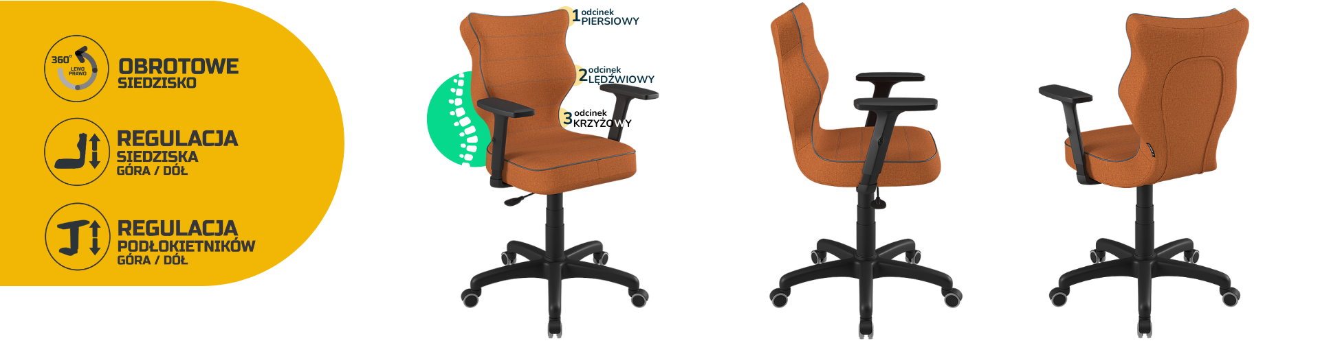 Krzesło biurowe dopasowane do wzrostu 159-188 cm, model Uni kolor pomarańczowy obrotowe