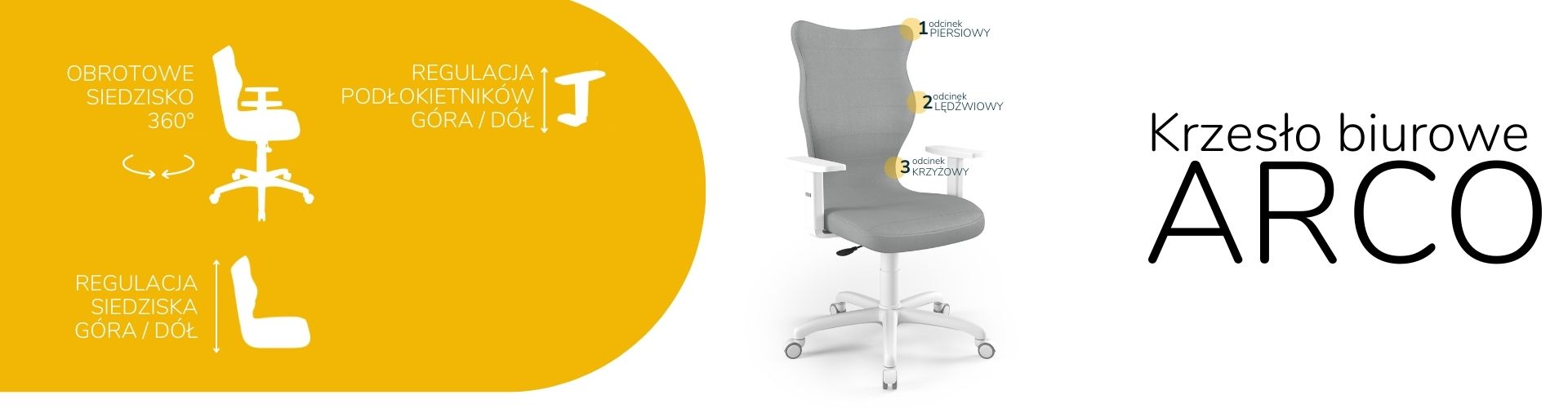 Oprócz tego, prezentowane krzesło biurowe tapicerowane zostało wyposażone w zestaw pięciu miękkich kółek obrotowych. Model krzesła biurowego na kółkach umożliwia płynny ruch w każdym kierunku. Arco dzięki swojej budowie pozwala na swobodne ruchy zarówno na twardej podłodze, jak i na miękkich wykładzinach czy dywanach. Krzesło do biurka Arco, dzięki swojej solidnej konstrukcji, wygodnemu siedzisku, wielu opcjom regulacji, a także licznym walorom estetycznym stanowi idealny wybór. To doskonałe rozwiązanie zarówno do nowoczesnych przestrzeni biurowych, jak i do kameralnego biura w zaciszu domowym. Warto również dodać, że przedstawiane krzesło biurowe zostało zaprojektowane oraz w całości wyprodukowane w Polsce, co dodatkowo świadczy o wysokiej jakości wykonania.