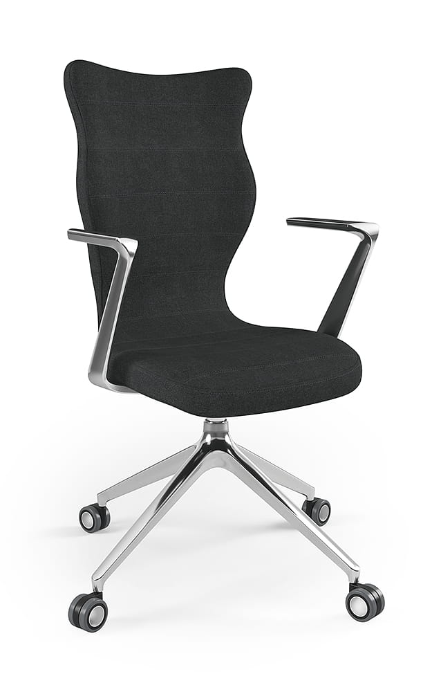 Oprócz tego, prezentowane krzesło biurowe tapicerowane zostało wyposażone w zestaw pięciu miękkich kółek obrotowych. Model krzesła biurowego na kółkach umożliwia płynny ruch w każdym kierunku. Arco dzięki swojej budowie pozwala na swobodne ruchy zarówno na twardej podłodze, jak i na miękkich wykładzinach czy dywanach. Krzesło do biurka Arco, dzięki swojej solidnej konstrukcji, wygodnemu siedzisku, wielu opcjom regulacji, a także licznym walorom estetycznym stanowi idealny wybór. To doskonałe rozwiązanie zarówno do nowoczesnych przestrzeni biurowych, jak i do kameralnego biura w zaciszu domowym. Warto również dodać, że przedstawiane krzesło biurowe zostało zaprojektowane oraz w całości wyprodukowane w Polsce, co dodatkowo świadczy o wysokiej jakości wykonania.