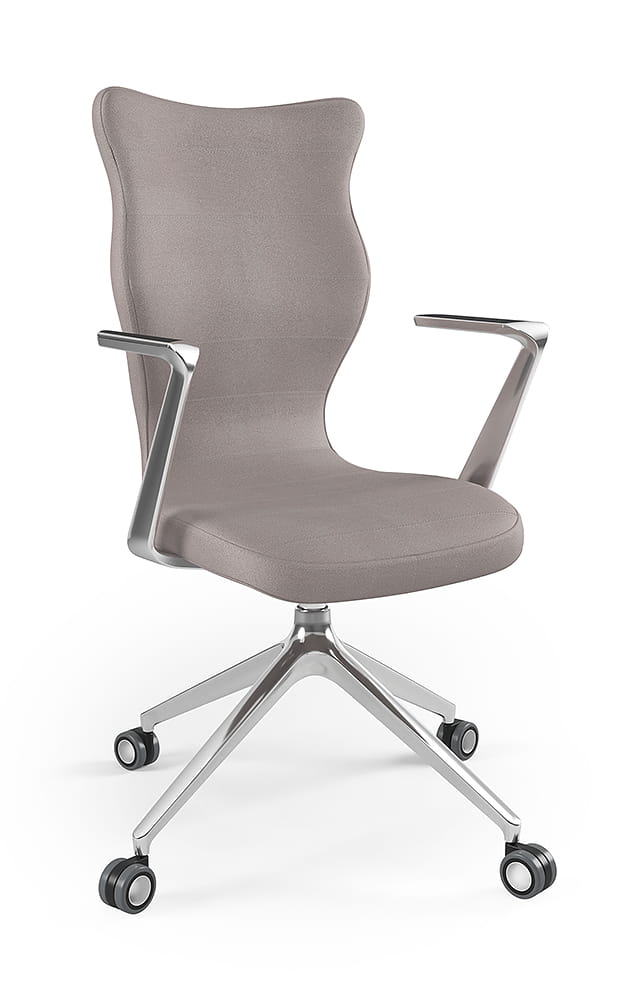 Oprócz tego, prezentowane krzesło biurowe tapicerowane zostało wyposażone w zestaw pięciu miękkich kółek obrotowych. Model krzesła biurowego na kółkach umożliwia płynny ruch w każdym kierunku. Arco dzięki swojej budowie pozwala na swobodne ruchy zarówno na twardej podłodze, jak i na miękkich wykładzinach czy dywanach. Krzesło do biurka Arco, dzięki swojej solidnej konstrukcji, wygodnemu siedzisku, wielu opcjom regulacji, a także licznym walorom estetycznym stanowi idealny wybór. To doskonałe rozwiązanie zarówno do nowoczesnych przestrzeni biurowych, jak i do kameralnego biura w zaciszu domowym. Warto również dodać, że przedstawiane krzesło biurowe zostało zaprojektowane oraz w całości wyprodukowane w Polsce, co dodatkowo świadczy o wysokiej jakości wykonania.