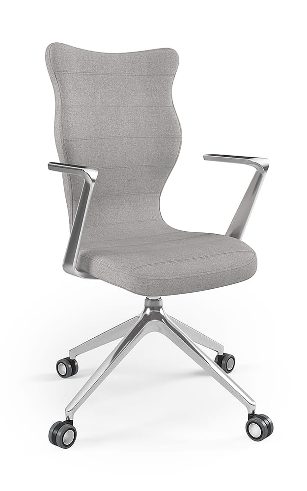 Oprócz tego, prezentowane krzesło biurowe tapicerowane zostało wyposażone w zestaw pięciu miękkich kółek obrotowych. Model krzesła biurowego na kółkach umożliwia płynny ruch w każdym kierunku. Arco dzięki swojej budowie pozwala na swobodne ruchy zarówno na twardej podłodze, jak i na miękkich wykładzinach czy dywanach. Krzesło do biurka Arco, dzięki swojej solidnej konstrukcji, wygodnemu siedzisku, wielu opcjom regulacji, a także licznym walorom estetycznym stanowi idealny wybór. To doskonałe rozwiązanie zarówno do nowoczesnych przestrzeni biurowych, jak i do kameralnego biura w zaciszu domowym. Warto również dodać, że przedstawiane krzesło biurowe zostało zaprojektowane oraz w całości wyprodukowane w Polsce, co dodatkowo świadczy o wysokiej jakości wykonania.