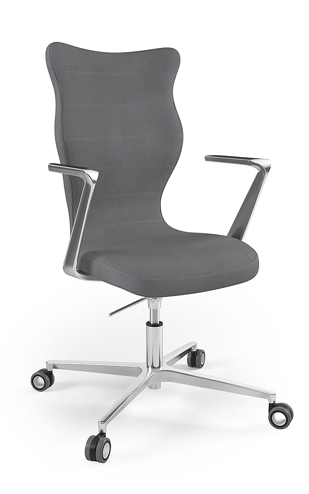 Oprócz tego, prezentowane krzesło biurowe tapicerowane zostało wyposażone w zestaw pięciu miękkich kółek obrotowych. Model krzesła biurowego na kółkach umożliwia płynny ruch w każdym kierunku. Arco dzięki swojej budowie pozwala na swobodne ruchy zarówno na twardej podłodze, jak i na miękkich wykładzinach czy dywanach. Krzesło do biurka Arco, dzięki swojej solidnej konstrukcji, wygodnemu siedzisku, wielu opcjom regulacji, a także licznym walorom estetycznym stanowi idealny wybór. To doskonałe rozwiązanie zarówno do nowoczesnych przestrzeni biurowych, jak i do kameralnego biura w zaciszu domowym. Warto również dodać, że przedstawiane krzesło biurowe zostało zaprojektowane oraz w całości wyprodukowane w Polsce, co dodatkowo świadczy o wysokiej jakości wykonania.