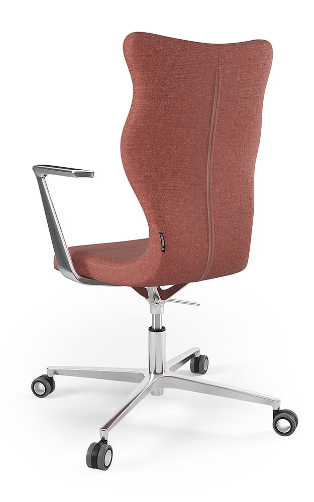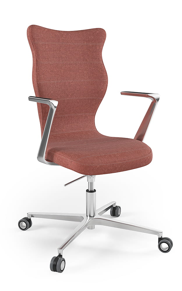 Oprócz tego, prezentowane krzesło biurowe tapicerowane zostało wyposażone w zestaw pięciu miękkich kółek obrotowych. Model krzesła biurowego na kółkach umożliwia płynny ruch w każdym kierunku. Arco dzięki swojej budowie pozwala na swobodne ruchy zarówno na twardej podłodze, jak i na miękkich wykładzinach czy dywanach. Krzesło do biurka Arco, dzięki swojej solidnej konstrukcji, wygodnemu siedzisku, wielu opcjom regulacji, a także licznym walorom estetycznym stanowi idealny wybór. To doskonałe rozwiązanie zarówno do nowoczesnych przestrzeni biurowych, jak i do kameralnego biura w zaciszu domowym. Warto również dodać, że przedstawiane krzesło biurowe zostało zaprojektowane oraz w całości wyprodukowane w Polsce, co dodatkowo świadczy o wysokiej jakości wykonania.