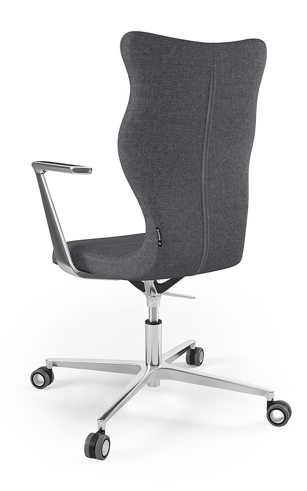 Oprócz tego, prezentowane krzesło biurowe tapicerowane zostało wyposażone w zestaw pięciu miękkich kółek obrotowych. Model krzesła biurowego na kółkach umożliwia płynny ruch w każdym kierunku. Arco dzięki swojej budowie pozwala na swobodne ruchy zarówno na twardej podłodze, jak i na miękkich wykładzinach czy dywanach. Krzesło do biurka Arco, dzięki swojej solidnej konstrukcji, wygodnemu siedzisku, wielu opcjom regulacji, a także licznym walorom estetycznym stanowi idealny wybór. To doskonałe rozwiązanie zarówno do nowoczesnych przestrzeni biurowych, jak i do kameralnego biura w zaciszu domowym. Warto również dodać, że przedstawiane krzesło biurowe zostało zaprojektowane oraz w całości wyprodukowane w Polsce, co dodatkowo świadczy o wysokiej jakości wykonania.