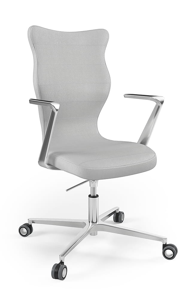 Oprócz tego, prezentowane krzesło biurowe tapicerowane zostało wyposażone w zestaw pięciu miękkich kółek obrotowych. Model krzesła biurowego na kółkach umożliwia płynny ruch w każdym kierunku. Arco dzięki swojej budowie pozwala na swobodne ruchy zarówno na twardej podłodze, jak i na miękkich wykładzinach czy dywanach. Krzesło do biurka Arco, dzięki swojej solidnej konstrukcji, wygodnemu siedzisku, wielu opcjom regulacji, a także licznym walorom estetycznym stanowi idealny wybór. To doskonałe rozwiązanie zarówno do nowoczesnych przestrzeni biurowych, jak i do kameralnego biura w zaciszu domowym. Warto również dodać, że przedstawiane krzesło biurowe zostało zaprojektowane oraz w całości wyprodukowane w Polsce, co dodatkowo świadczy o wysokiej jakości wykonania.