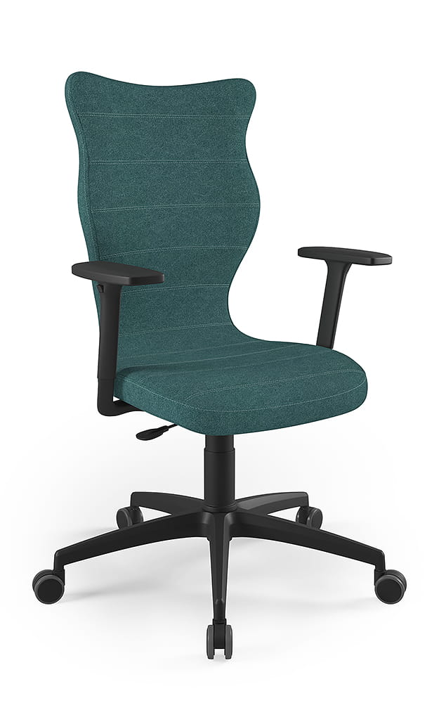 Nowoczesne krzesło Perto Plus Czarne jest praktycznym i eleganckim rozwiązaniem, dostosowanym do potrzeb współczesnego biura. Podczas wielogodzinnej pracy w pozycji siedzącej niezwykle istotną kwestią są odpowiednie warunki. Optymalna postawa jest absolutną podstawą, ale znaczenie mają jednak również takie kwestie jak odległość od monitora czy częste zmiany pozycji. Oferowane przez nas czarne krzesło do biurka Perto Plus pozwala w skuteczny sposób zadbać o wszystkie te trzy aspekty jednocześnie. Dzięki temu zwiększa się nasza efektywność, a negatywne skutki pracy siedzącej ulegają znacznej redukcji. Krzesło biurowe na kółkach pozwala również rozwiązać problemy organizacyjne, związane z aranżacją i re-aranżacją przestrzeni w biurze. Możemy w łatwy sposób przestawić je w inne miejsce lub przenieść na niższe, czy wyższe piętro. Nie będzie nas to kosztowało zbyt wiele wysiłku, ponieważ zaprojektowane przez nas krzesło do biurka czarne jest bardzo lekkie.