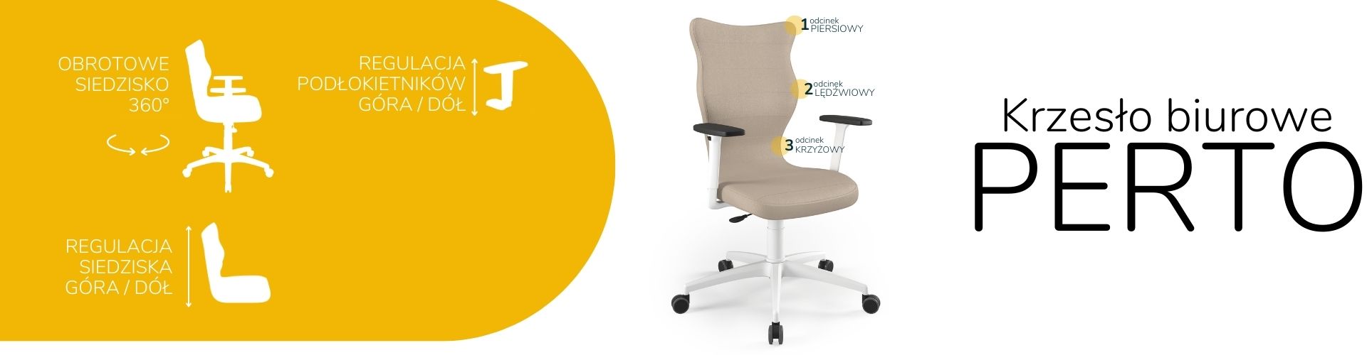 Krzesło biurowe dopasowane do wzrostu 180+ cm, model Perto kolor beżowy obrotowe
