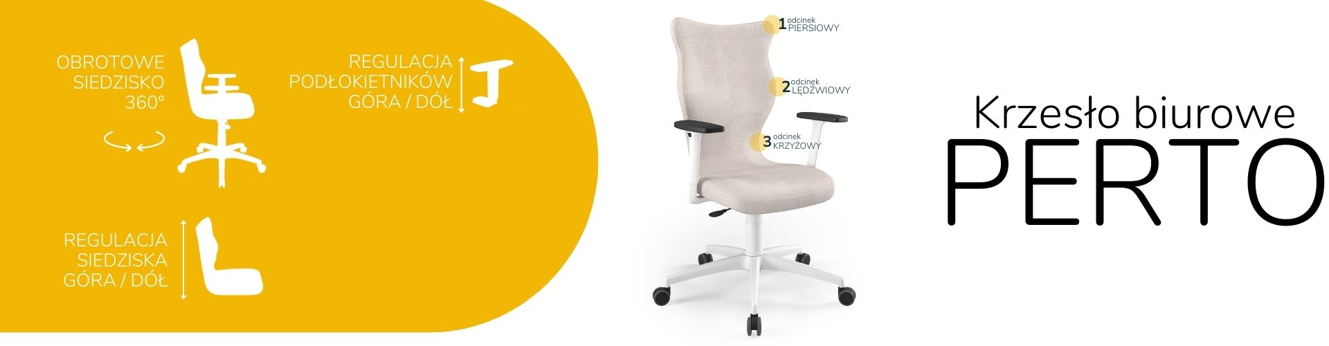 Model Perto dopasowany do biurek o wysokości 70-82 cm.