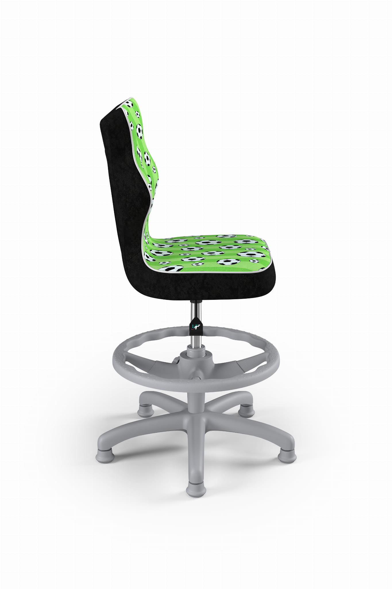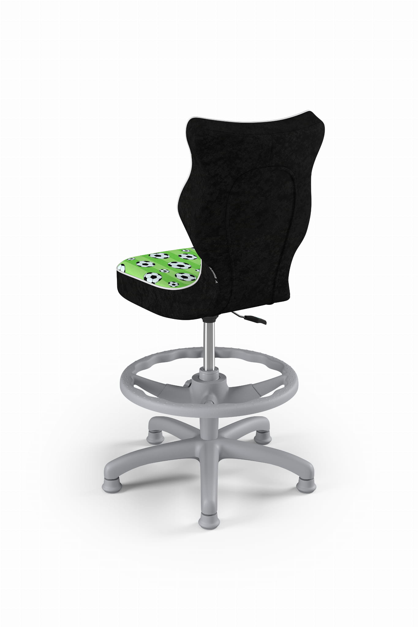 Krzesło do biurka dla chłopca dopasowane do wzrostu 159-188 cm, model Petit z podnóżkiem motyw piłki obrotowe