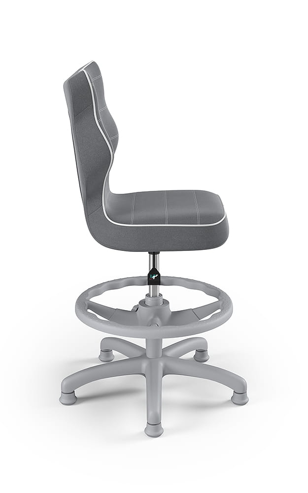 Krzesło Petit z podnóżkiem to ergonomiczne krzesło obrotowe zaprojektowane z myślą o dzieciach, które wspiera prawidłową postawę podczas nauki i pracy przy biurku. Wyprofilowane siedzisko i oparcie zapewniają odciążenie kręgosłupa w odcinku piersiowym, lędźwiowym i krzyżowym, a regulowany podnóżek pozwala dopasować pozycję nóg do wzrostu użytkownika, zwiększając komfort i stabilność podczas siedzenia.