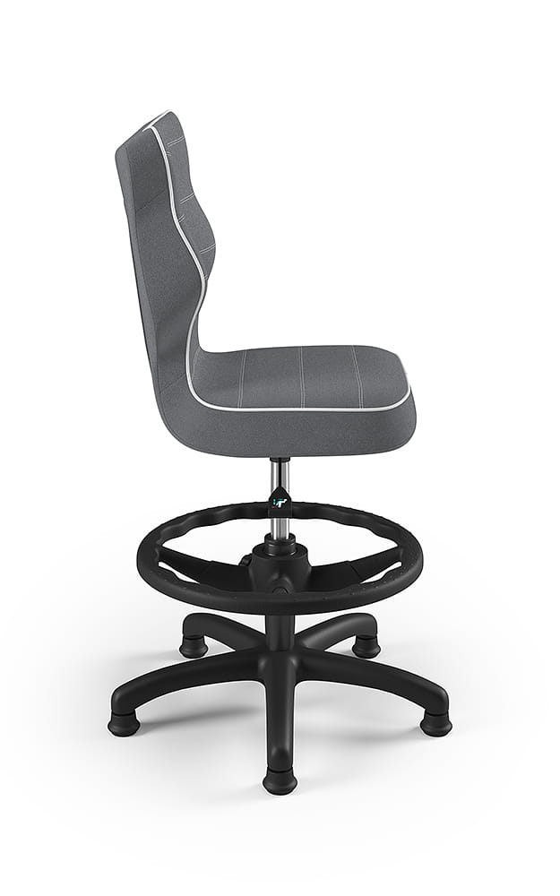 Krzesło Petit z podnóżkiem to ergonomiczne krzesło obrotowe zaprojektowane z myślą o dzieciach, które wspiera prawidłową postawę podczas nauki i pracy przy biurku. Wyprofilowane siedzisko i oparcie zapewniają odciążenie kręgosłupa w odcinku piersiowym, lędźwiowym i krzyżowym, a regulowany podnóżek pozwala dopasować pozycję nóg do wzrostu użytkownika, zwiększając komfort i stabilność podczas siedzenia.