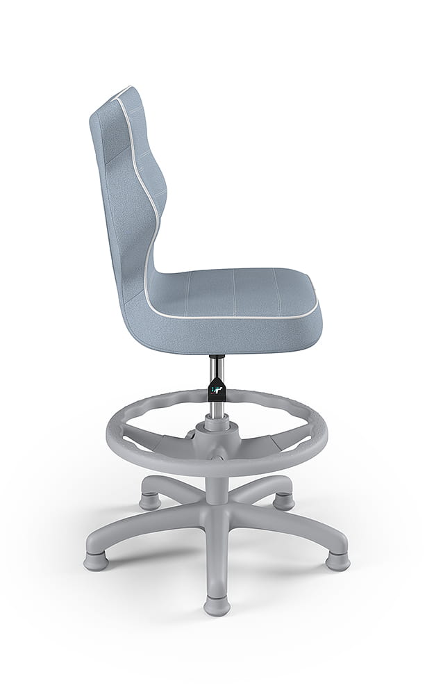 Krzesło Petit z podnóżkiem to ergonomiczne krzesło obrotowe zaprojektowane z myślą o dzieciach, które wspiera prawidłową postawę podczas nauki i pracy przy biurku. Wyprofilowane siedzisko i oparcie zapewniają odciążenie kręgosłupa w odcinku piersiowym, lędźwiowym i krzyżowym, a regulowany podnóżek pozwala dopasować pozycję nóg do wzrostu użytkownika, zwiększając komfort i stabilność podczas siedzenia.