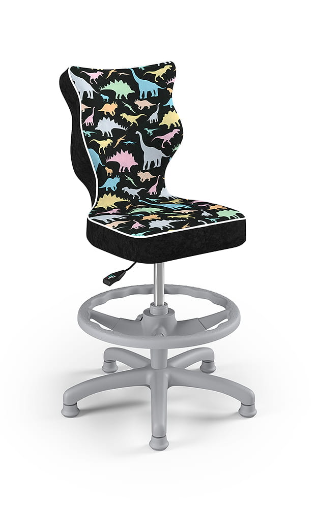Krzesło do biurka dla dziecka dopasowane do wzrostu 159-188 cm, model Petit z podnóżkiem motyw dinozaury obrotowe
