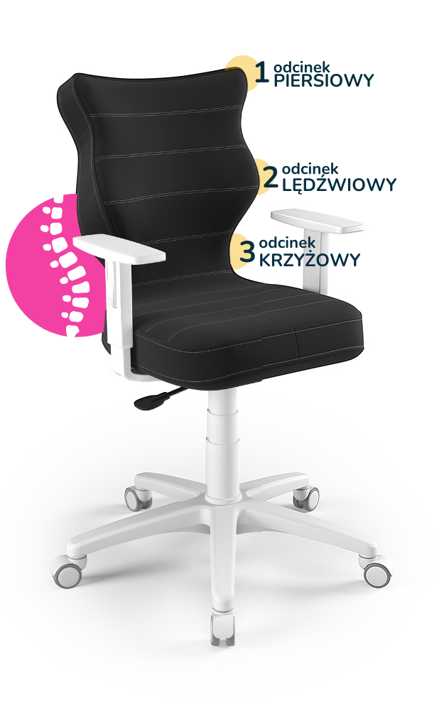 Aby zapewnić odpowiednią ergonomię, krzesła dostępne są w różnych rozmiarach, które należy dobrać w zależności od wieku i wzrostu użytkownika. Właściwy rozmiar gwarantuje, że stopy opierają się płasko na podłodze, kolana są ugięte pod kątem 90°, a kręgosłup pozostaje w naturalnej pozycji. Taka regulacja minimalizuje ryzyko złych nawyków posturalnych oraz dyskomfortu podczas długiego siedzenia.