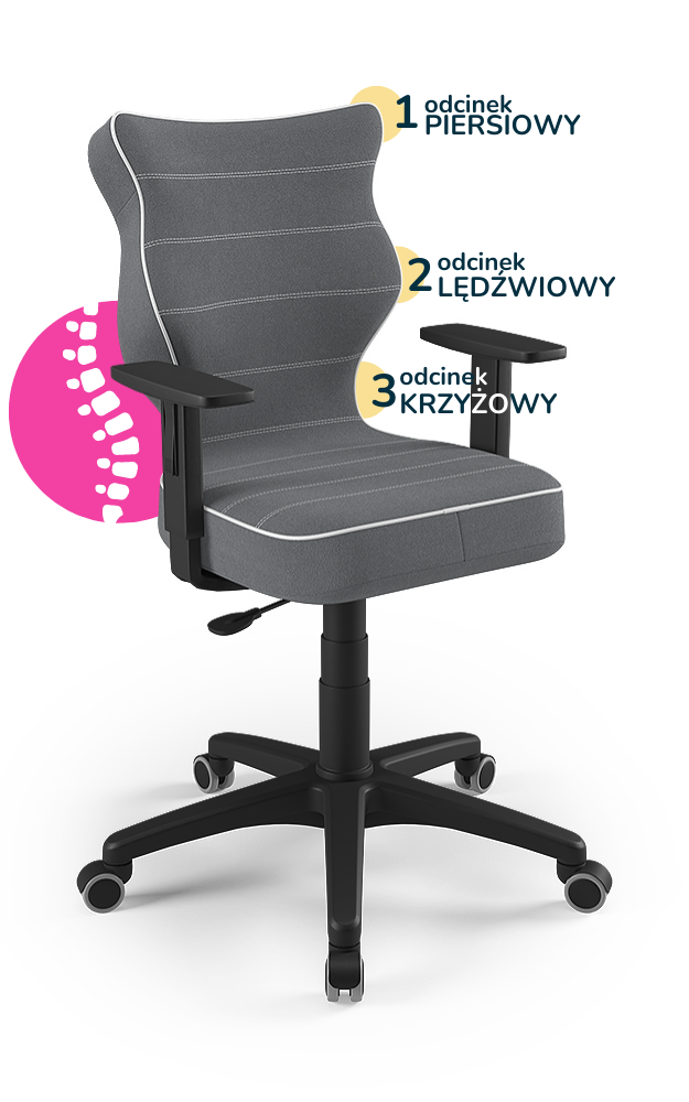 Krzesło do biurka dla dziecka dopasowane do wzrostu 146-176,5 cm, model Duo kolor ciemny szary obrotowe