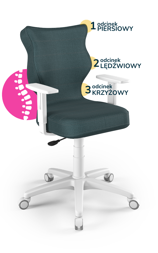 Aby zapewnić odpowiednią ergonomię, krzesła dostępne są w różnych rozmiarach, które należy dobrać w zależności od wieku i wzrostu użytkownika. Właściwy rozmiar gwarantuje, że stopy opierają się płasko na podłodze, kolana są ugięte pod kątem 90°, a kręgosłup pozostaje w naturalnej pozycji. Taka regulacja minimalizuje ryzyko złych nawyków posturalnych oraz dyskomfortu podczas długiego siedzenia.