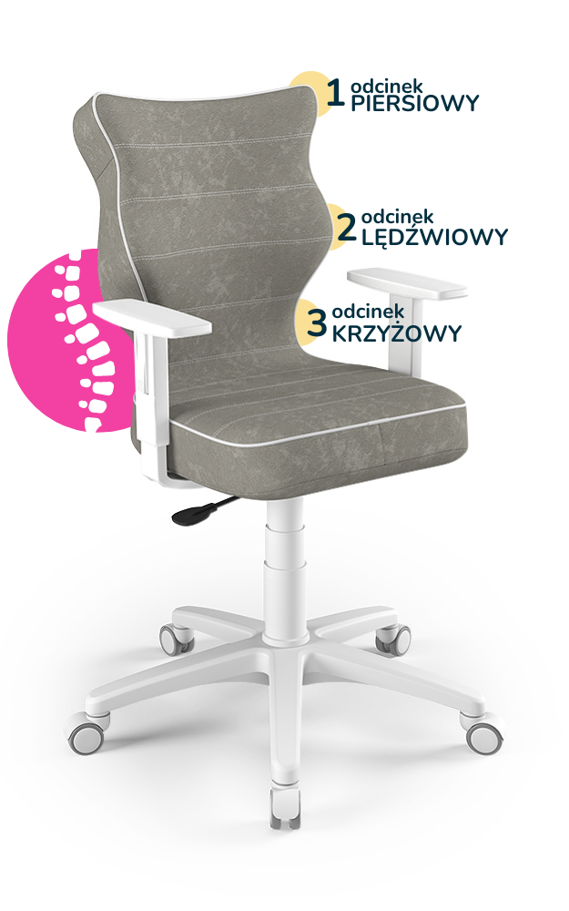 Krzesło do biurka dla dziecka dopasowane do wzrostu 146-176,5 cm, model Duo kolor szary obrotowe