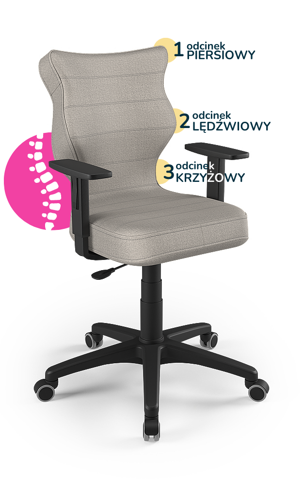 Aby zapewnić odpowiednią ergonomię, krzesła dostępne są w różnych rozmiarach, które należy dobrać w zależności od wieku i wzrostu użytkownika. Właściwy rozmiar gwarantuje, że stopy opierają się płasko na podłodze, kolana są ugięte pod kątem 90°, a kręgosłup pozostaje w naturalnej pozycji. Taka regulacja minimalizuje ryzyko złych nawyków posturalnych oraz dyskomfortu podczas długiego siedzenia.