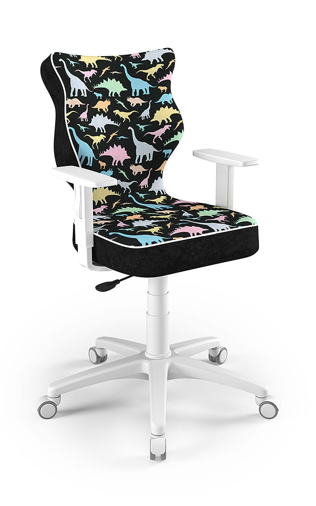 Krzesło do biurka dla dziecka dopasowane do wzrostu 146-176,5 cm, model Duo motyw dinozaury obrotowe