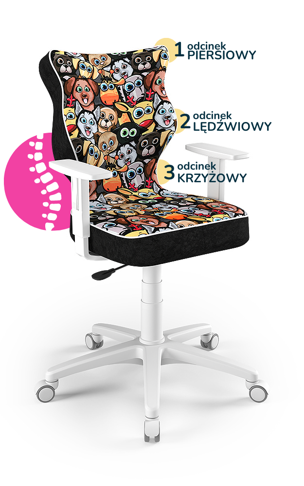 Krzesło do biurka dla dziecka dopasowane do wzrostu 146-176,5 cm, model Duo motyw zwierzaki obrotowe