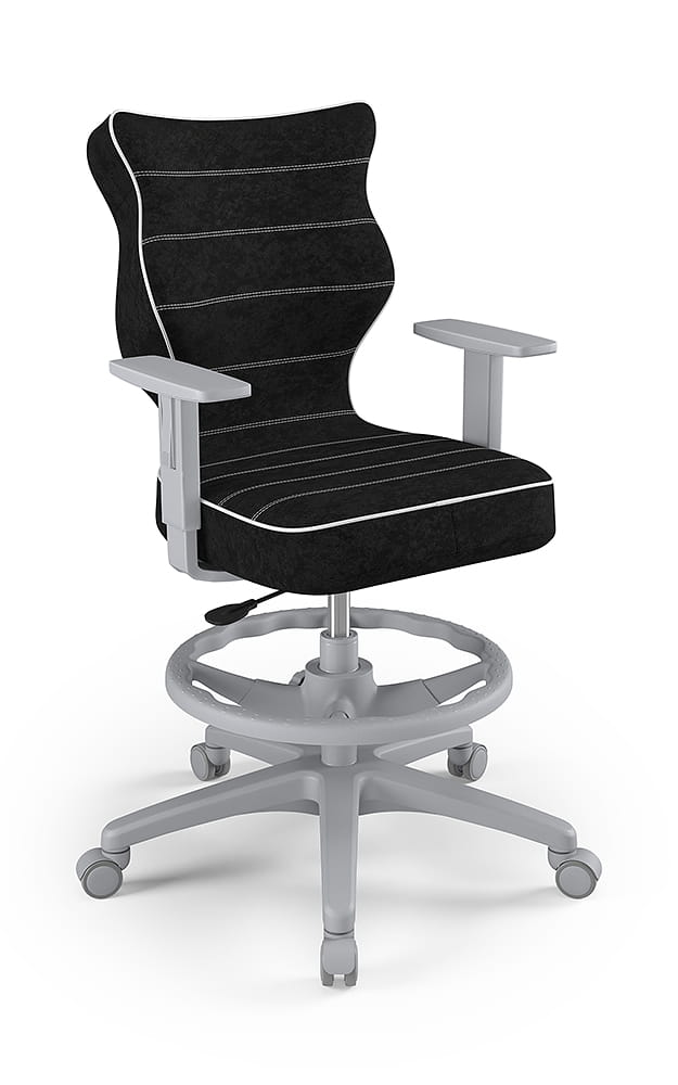 Krzesło do biurka dla dziecka dopasowane do wzrostu 146-176,5 cm, model Duo z podnóżkiem kolor czarny obrotowe
