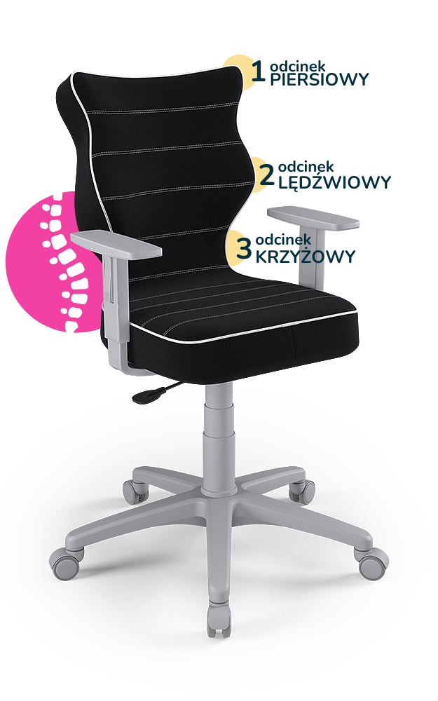 Krzesło do biurka dla dziecka dopasowane do wzrostu 159-188 cm, model Duo kolor czarny obrotowe