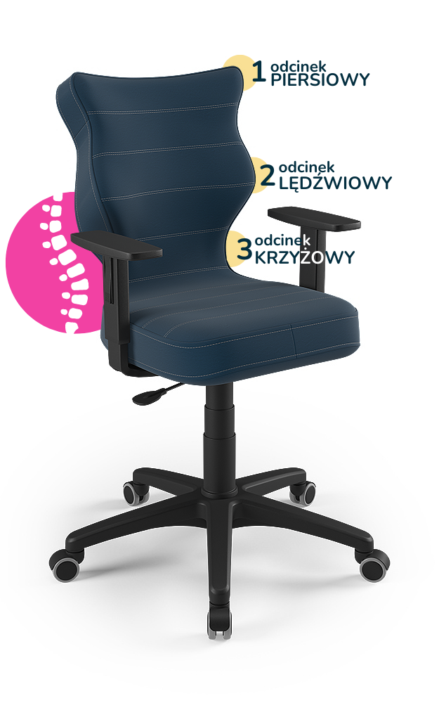 Krzesło do biurka dla dziecka dopasowane do wzrostu 159-188 cm, model Duo kolor granatowy obrotowe