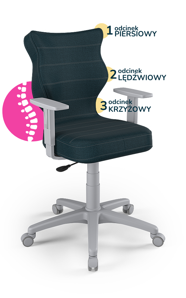 Krzesło do biurka dla dziecka dopasowane do wzrostu 159-188 cm, model Duo kolor granatowy obrotowe