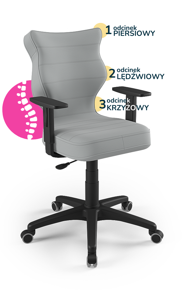 Krzesło do biurka dla dziecka dopasowane do wzrostu 159-188 cm, model Duo kolor szary obrotowe