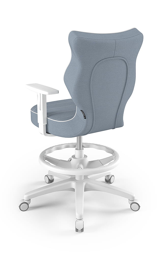 Krzesło do biurka dla dziecka dopasowane do wzrostu 159-188 cm, model Duo z podnóżkiem kolor niebieski obrotowe