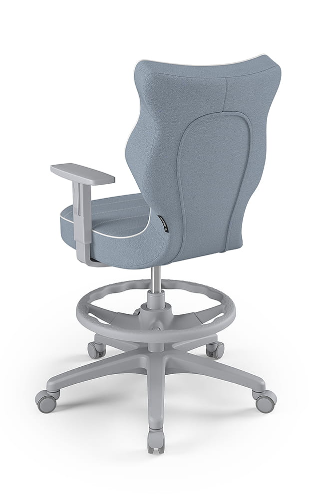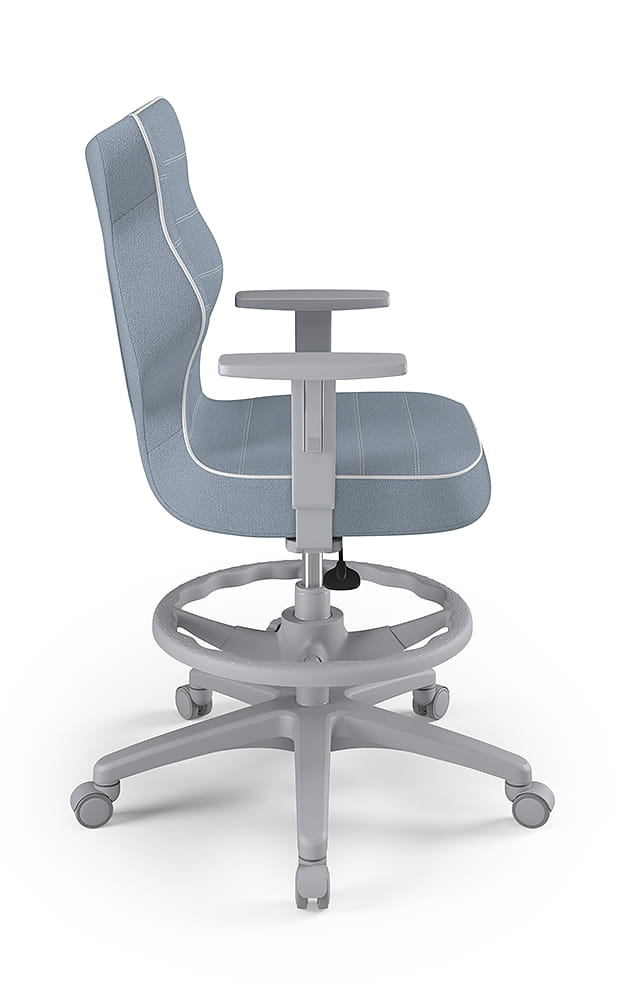 Krzesło młodzieżowe Duo z podnóżkiem zostało zaprojektowane z myślą o ergonomii i komforcie podczas nauki lub pracy przy biurku. Wklęsło-wypukła forma siedziska i oparcia wspiera prawidłowe ułożenie kręgosłupa, odciążając odcinek piersiowy, lędźwiowy i krzyżowy. Solidna konstrukcja gwarantuje trwałość i bezpieczeństwo użytkowania, a nowoczesny design sprawia, że krzesło wpasowuje się w różnorodne wnętrza.