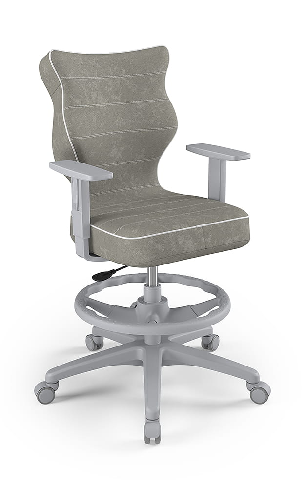 Krzesło do biurka dla dziecka dopasowane do wzrostu 159-188 cm, model Duo z podnóżkiem kolor szary obrotowe