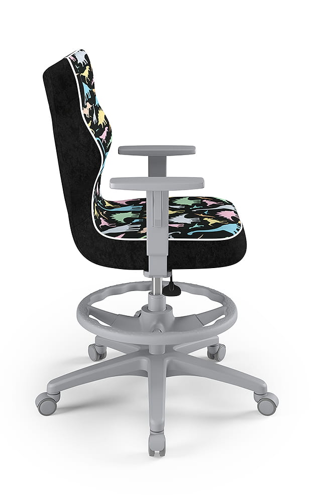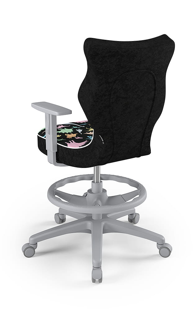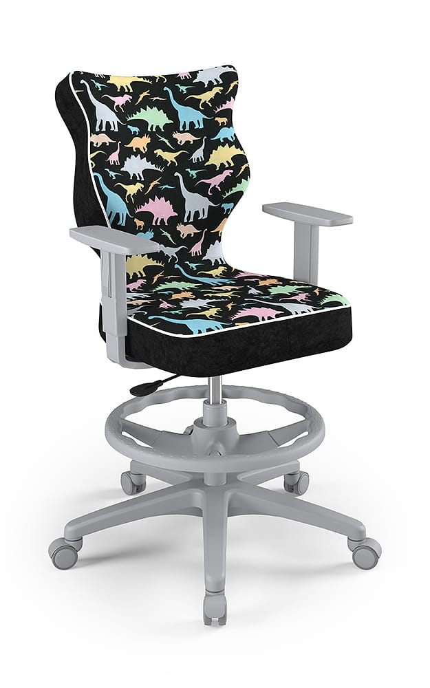 Krzesło do biurka dla dziecka dopasowane do wzrostu 159-188 cm, model Duo z podnóżkiem motyw dinozaury obrotowe
