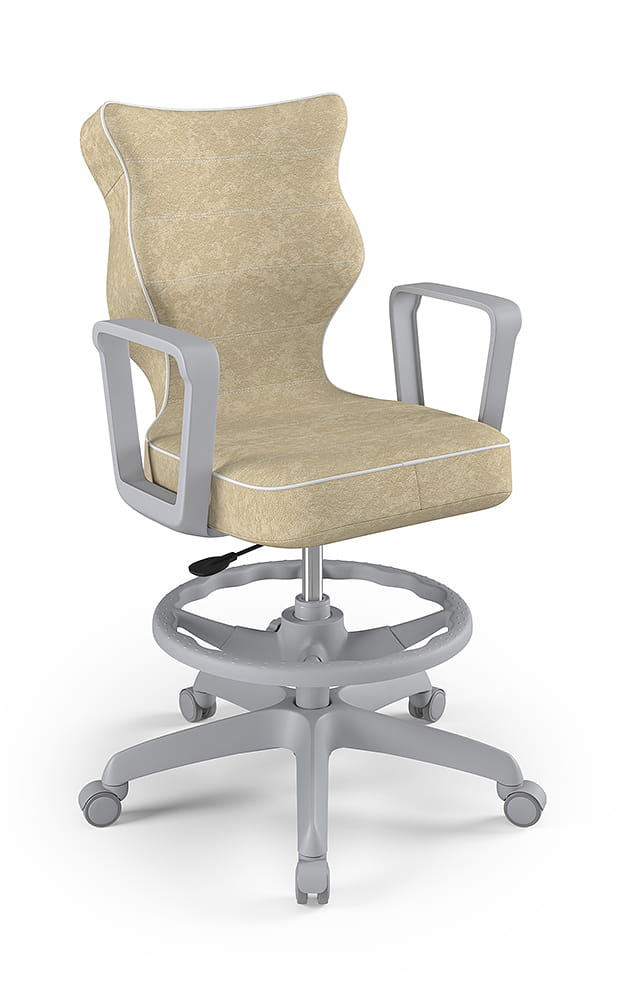 Krzesło do biurka dla dziecka dopasowane do wzrostu 159-188 cm, model Norm z podnóżkiem kolor beżowy obrotowe