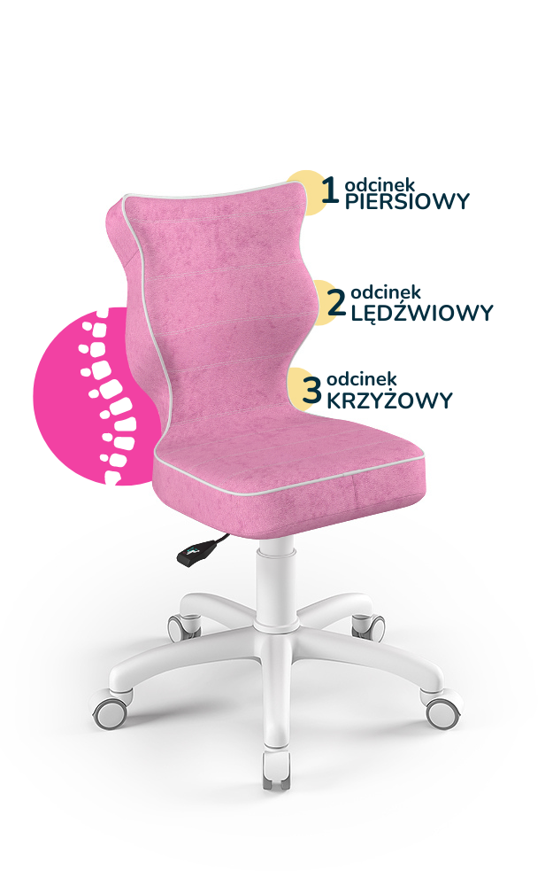 Krzesło do biurka dla dziewczynki dopasowane do wzrostu 119-142 cm, model Petit kolor różowy obrotowe