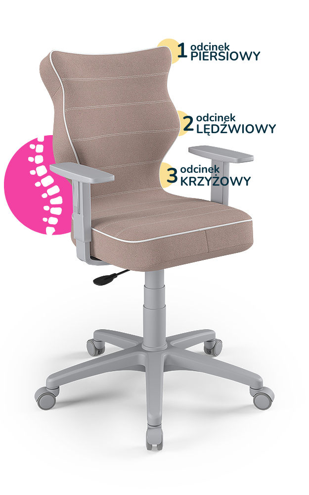 Krzesło do biurka dla dziewczynki dopasowane do wzrostu 146-176,5 cm, model Duo kolor różowy obrotowe