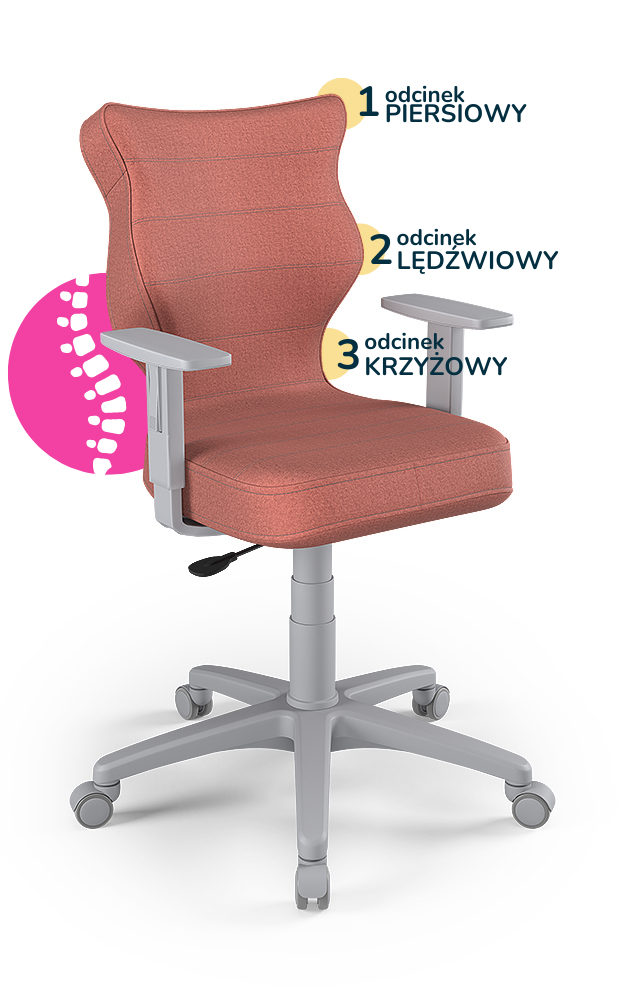 Krzesło do biurka dla dziewczynki dopasowane do wzrostu 146-176,5 cm, model Duo kolor różowy obrotowe