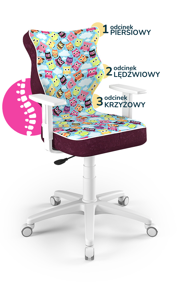 Krzesło do biurka dla dziewczynki dopasowane do wzrostu 146-176,5 cm, model Duo motyw sowy obrotowe