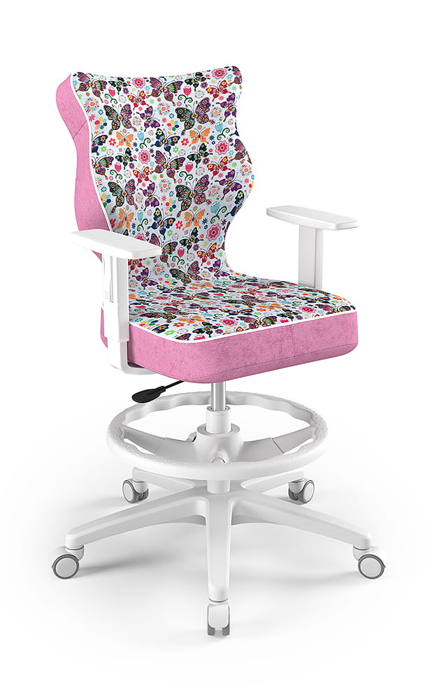 Krzesło do biurka dla dziewczynki dopasowane do wzrostu 146-176,5 cm, model Duo z podnóżkiem motyw motylki obrotowe