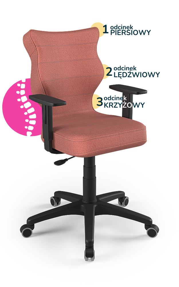 Krzesło do biurka dla dziewczynki dopasowane do wzrostu 159-188 cm, model Duo kolor różowy obrotowe