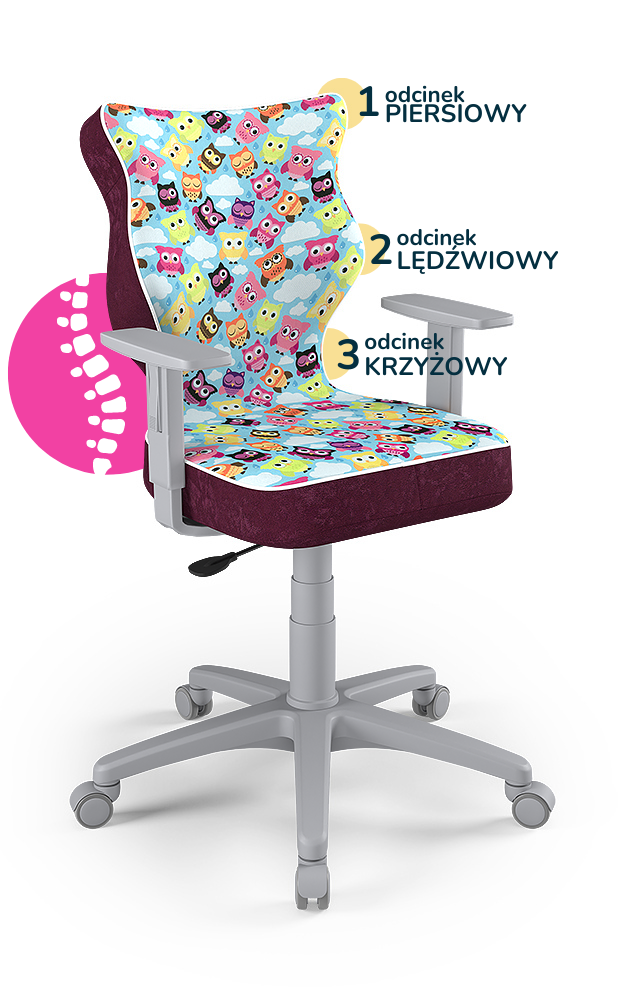 Krzesło do biurka dla dziewczynki dopasowane do wzrostu 159-188 cm, model Duo motyw sowy obrotowe