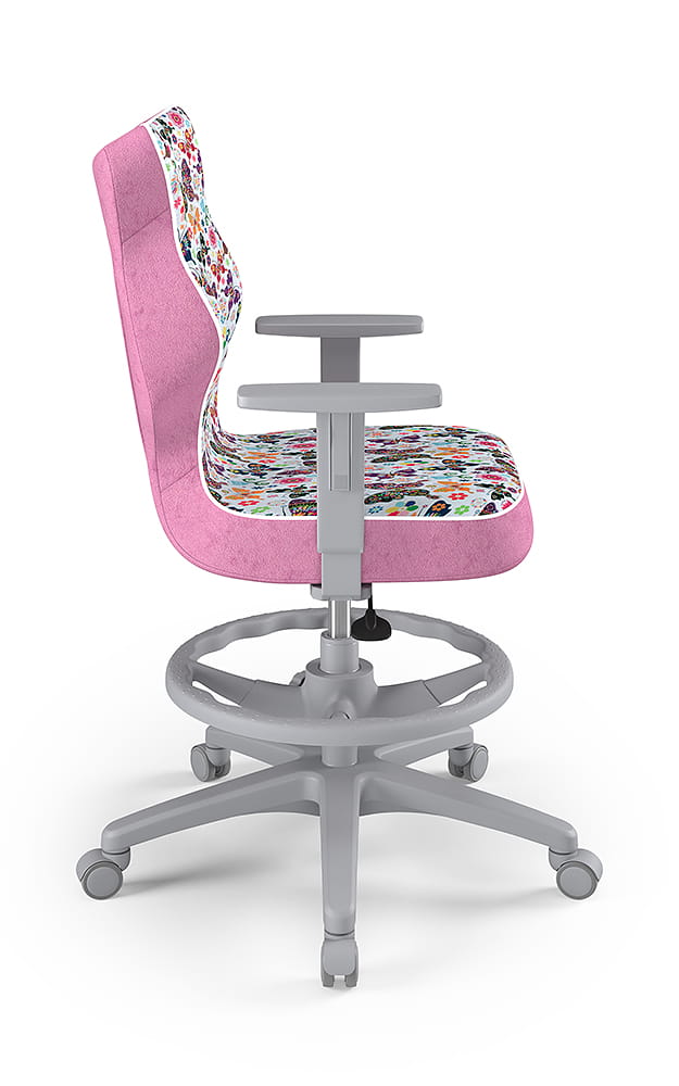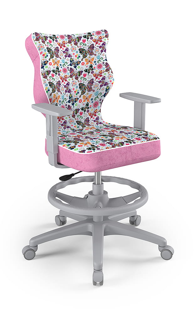 Krzesło do biurka dla dziewczynki dopasowane do wzrostu 159-188 cm, model Duo z podnóżkiem motyw motylki obrotowe