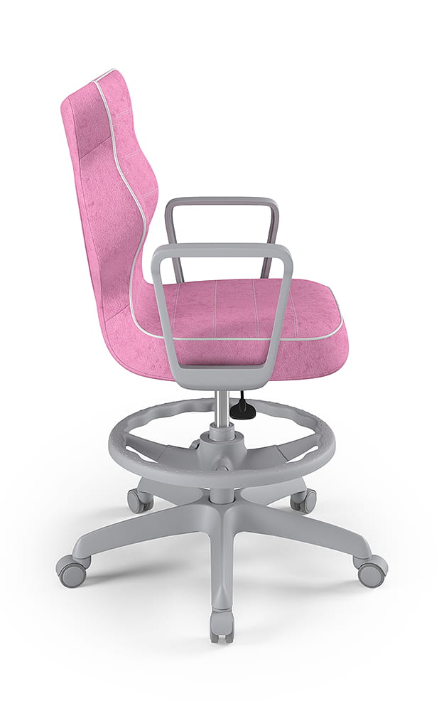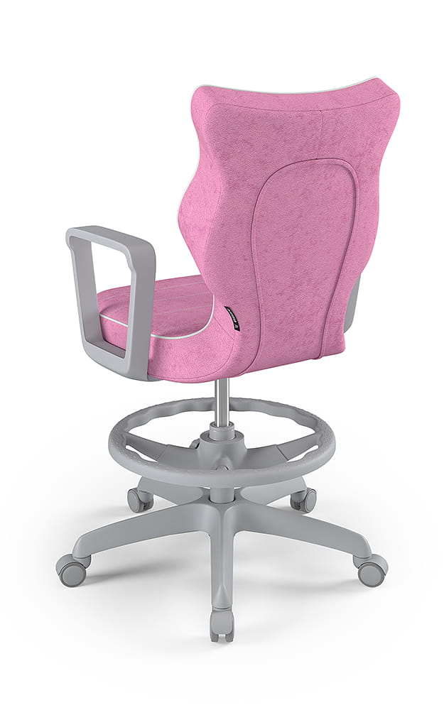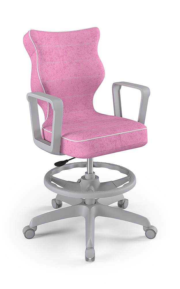 Krzesło do biurka dla dziewczynki dopasowane do wzrostu 159-188 cm, model Norm z podnóżkiem kolor różowy obrotowe